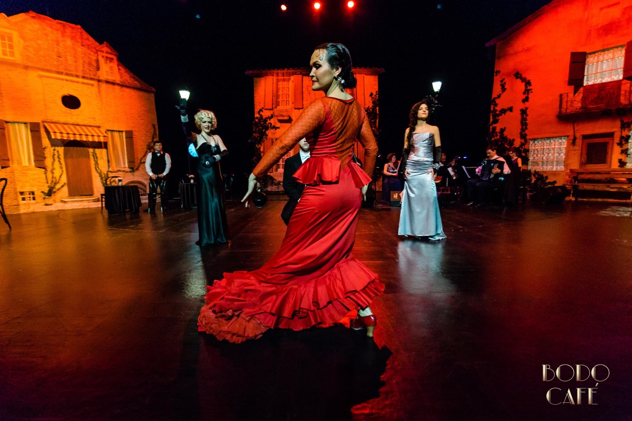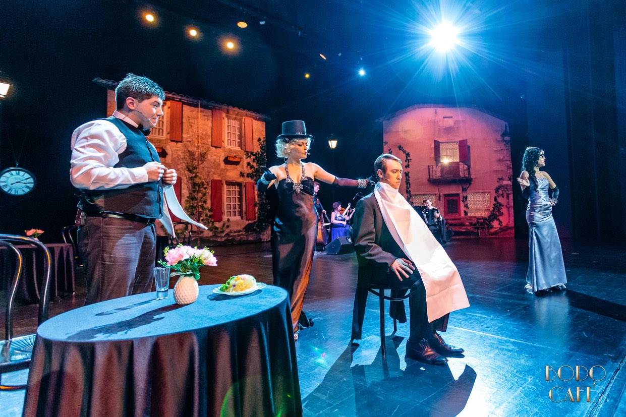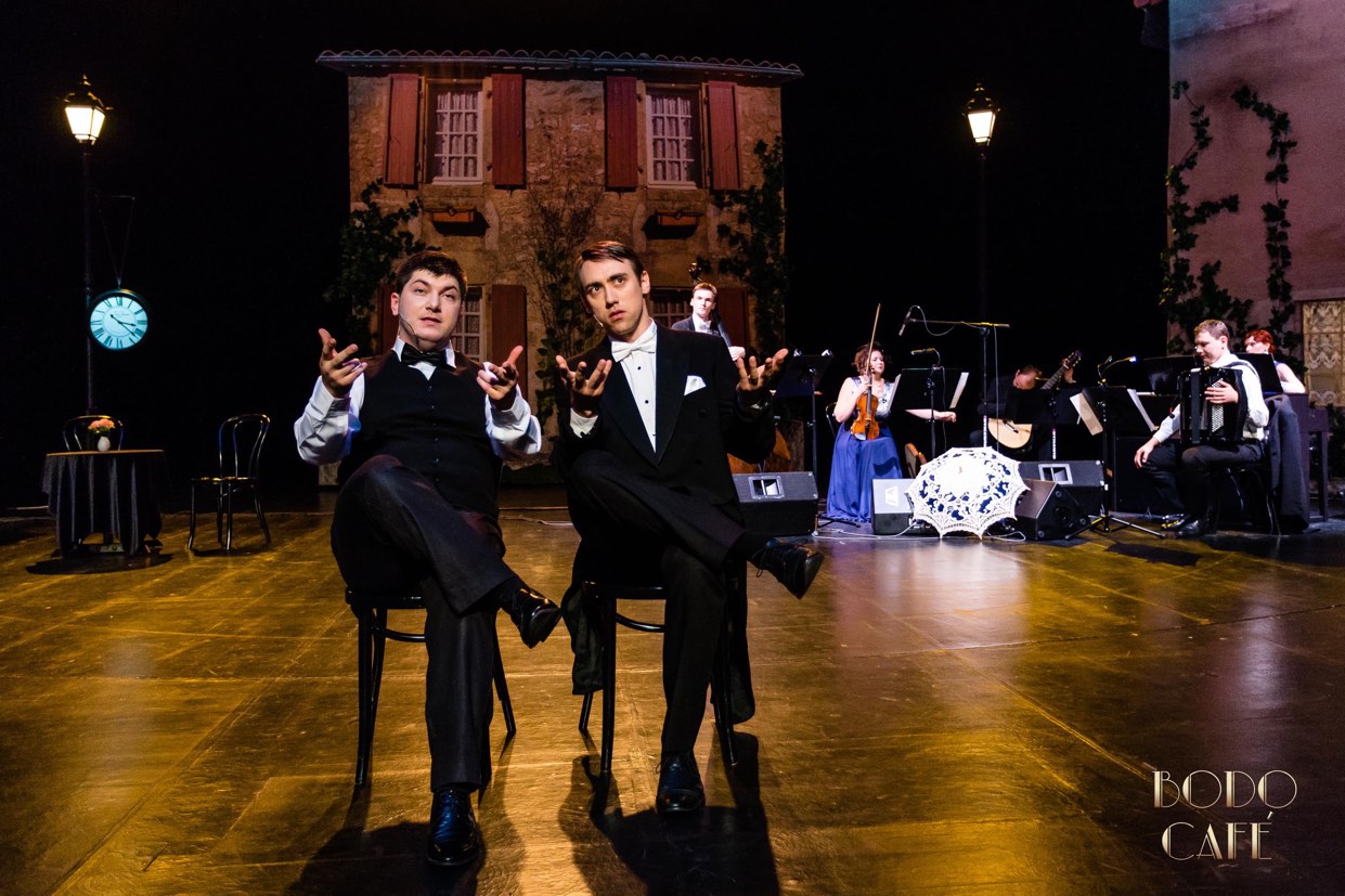 Nawiązujemy do postaci i twórczości Eugeniusza Bodo tworząc barwne i rozśpiewane widowisko. Łączymy trzy światy - powszechnie znane i lubiane piosenki filmowe z lat 30-tych poprzedniego stulecia, porywającą muzykę na żywo oraz aktorskie scenki w stylu kabaretów międzywojennych.
